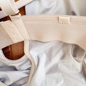 Suit Your Fancy plunge Low-back is the ultimate low-back, low-front solution! color champagne-beige