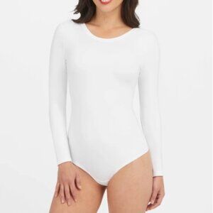 SPANX Suit Yourself Long Sleeve Scoop Neck Bodysuit in White (Size M)