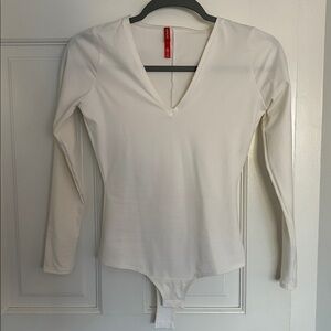 Chic v-neck white bodysuit with long sleeves. Perfect for layering. Excellent used condition, only worn once.