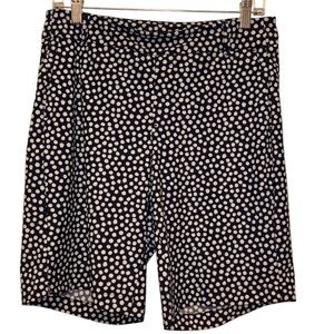 Chic shorts with a navy base and white dot design. Ideal for casual wear. 4 Way Stretch 10” inseam Faux pockets Pull on
