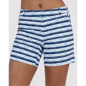 SPANX Sunshine 6” Short Blue Stripe UPF50+ Stretch Golf Beach Travel Pockets NWT