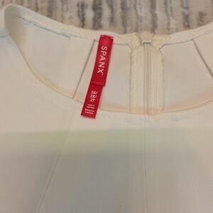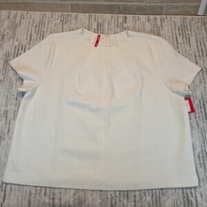 Has small stains... The SPANX The Perfect Funnel Top in Women's Size 2XL is a versatile and stylish blouse suitable for various occasions such as travel, casual outings, formal events, and business meetings. Made from a blend of nylon, spandex, and rayon, this top features a high neckline with a zip closure and pleated accents. The solid white color and classic style make it a timeless piece that can be worn during the summer, fall, and spring seasons. The stretch fabric ensures a comfortable fit for plus-size women, offering a flattering silhouette without compromising on style. Code 1060