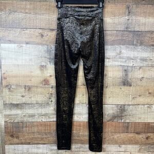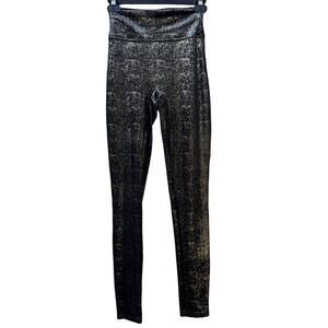 SPANX Velvet Shine Leggings Black Gold Metallic SZ XS