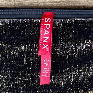 Spanx Velvet Shine Leggings. Style# 20188R. Size XS. Color ~ Black/gold metallic. Contoured power waistband. Center-seam free. Excellent condition. Measurements are in the pictures.