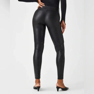SPANX Very Black Faux Leather Moto Leggings Size Small