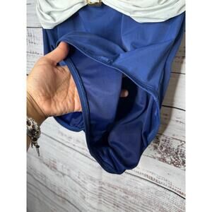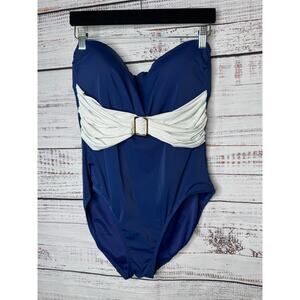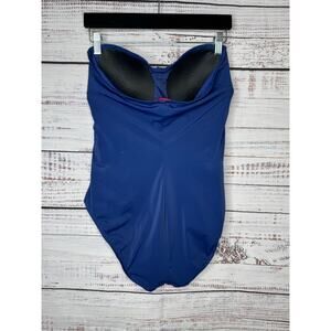 SPANX Whittle Waistline Bandeau Blue & White Slimming One Piece Swimsuit 12 EUC