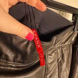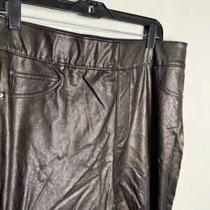 SPANX Women's 1X Faux Leather Leggings Pants Stretch Pull On Shiny Black Sleek