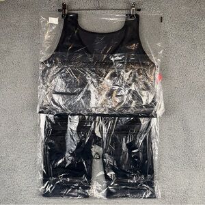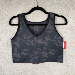 SPANX Women's 1X Set Crop Top and Biker Short Black Camo Lamn Active Seamless