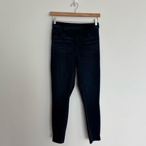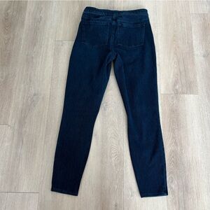 Stylish dark blue denim jeggings by SPANX. Comfortable fit. Perfect for casual wear.
