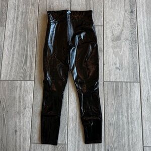 SPANX Women’s Faux Patent Leather Leggings Ankle Black Petite Medium