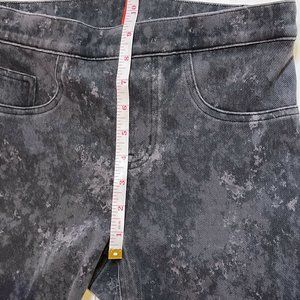 SPANX Women's Jean-Ish Ankle Legging in Gray/Black Marble Small EUC Measurements shown are flat lay-unstretched. Functional back pockets.