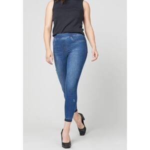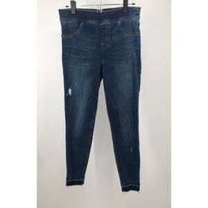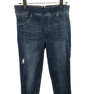 SPANX Womens Medium Wash Distressed Ankle Skinny Jeans L Pull On