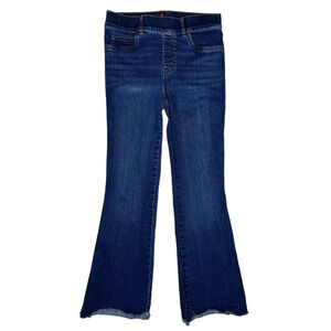SPANX Women’s Pull On Flare Jean in Medium Dark Wash with Raw Hem Size Small P