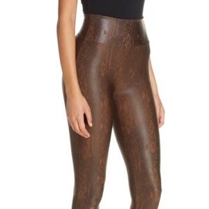 SPANX brown faux leather snakeskin leggings