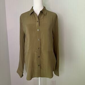 SPANX olive green button down long sleeve silk top size S