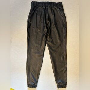 SPANX women’s black faux leather jogger pull on pants with front pockets Sz-L.