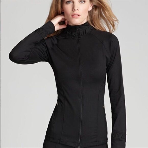 SPANX active contour full zip jacket size small Slimming features , contour seams , ruching in the collar and wrist back mesh under panel ventilation , thumb hole sleeve pockets