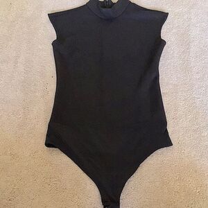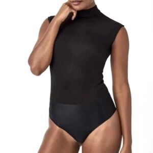 Elevate your style with this sleek black sleeveless turtleneck bodysuit. Perfect for any occasion, it offers a chic and versatile look.