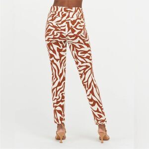 Stylish straight leg pants by SPANX. Features a bold brown and white pattern. Perfect for a chic look.