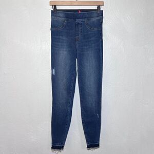 SPANX Distressed Ankle Skinny Jeans in Medium Wash
