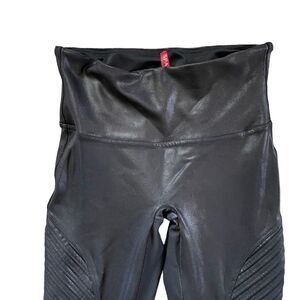 SPANX Faux Leather Moto Leggings Black Size Medium