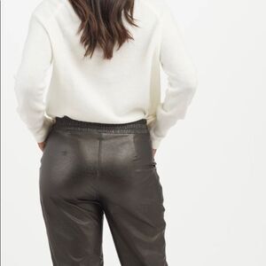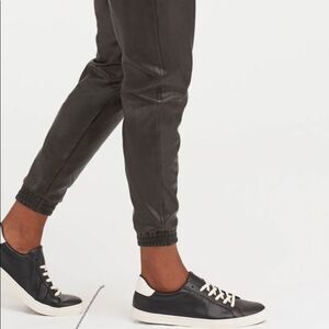 Leather-like fabric with comfortable stretch creates the look of true leather.