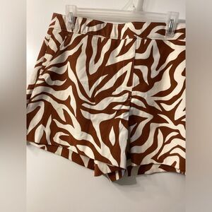SPANX “ON THE GO” ZEBRA PRINT SHORTS Size XL Brown & Cream