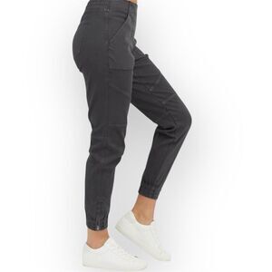 SPANX Stretch Twill Cargo Jogger Washed Black Slimming Front Panel Womens Medium