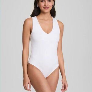 SPANXsmooth™ Jersey V-Neck Thong Bodysuit SIZE LARGE White Stretch NWOT