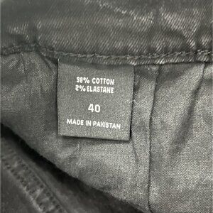 The size is 40 with a waist size as seen in the pics, while the inseam is 31 inches and the rise is also visible in the pictures. The shorts come in a straight style with stretch features and are part of the premium denim studio collection. Personalization is not available, and the shorts are not handmade.