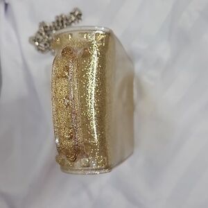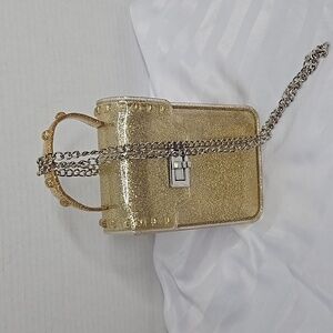 SPARKLE GOLD PLASTIC HANDBAG -GOLD SPARLE WITH SILVER CHAIN STRAP