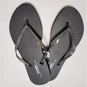Gorgeous OLD NAVY Flip Flops Pool Slippers Shoes Black Gray Glitter Color NEW