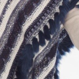 With just a hint of shimmer, this contemporary, cool-striped poncho is your seasonal segue into chillier days.