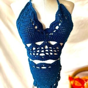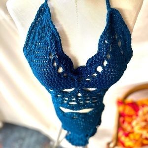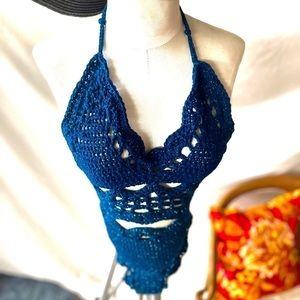 This one of a kind, handmade sexy and flirty festival or swim set is like a calm day on the high seas! Inspired by the deep indigo of the Pacific, you will be vibing the sensuality of the Sirens!! 🚨 Will fit most from S to M.