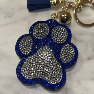 New Sparkling Rhinestone Blue and Silver Paw-Shaped Keychain Or Bag Charm With Tassel Perfect For The Pet Lover