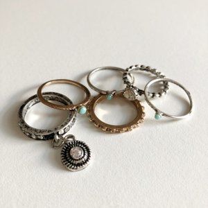 SPARKLING SAGE BURNISHED GOLD & SILVER RINGS STACKABLE TURQUOISE SET OF 6