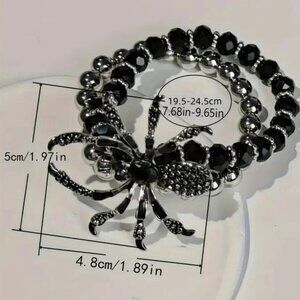 New in original packaging. Gorgeous arachnid in a black beaded bracelet. Great seasonal item around Halloween. Beautiful beadwork. Very pretty design at any time. Stretches to fit.