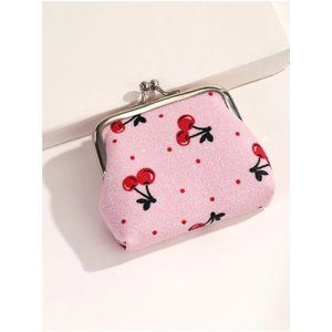 SPARKLY CARTOON CHERRY GRAPHIC KISS LOCK COIN PURSE PINK