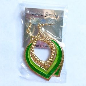 SPARKLY GREEN & GOLD BOHO EARRINGS