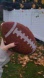 Brown and white rhinestone football bag, perfect for gameday outfits. Comes with a chain crossbody strap. Has a clasp closure.