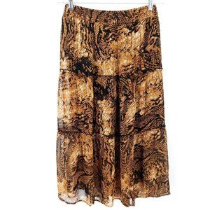 SPARKZ COPENHAGEN Animal Print Tiered Gypsy Boho Maxi Skirt