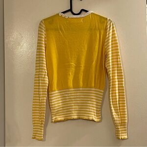 SPARROW by ANTHROPOLOGIE Snap On Striped Cardigan Sweater in Yellow