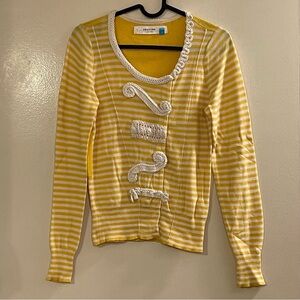 SPARROW by ANTHROPOLOGIE Snap On Striped Cardigan Sweater in Yellow