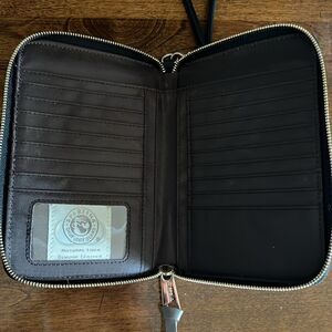 SPARTINA Lorelei Black Taupe Leather & Canvas Mid Sized Wallet/Wristlet A18