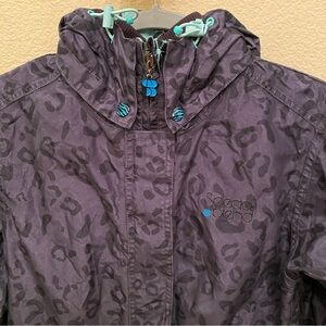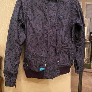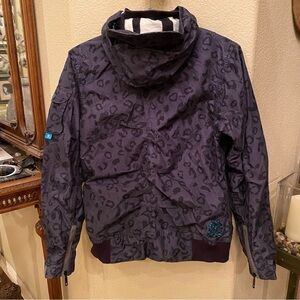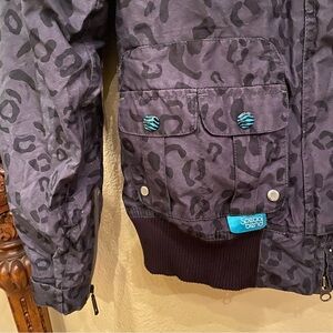 Pre-owned in great condition with no stains but has some missing threads (about 5 inches) inside left side jacket. Can sew back or wear it as is. Women’s gray and black animal print snowboarding 15K hoodie jacket. Zipper and velcro closure. Comes from smoke and pet free home.