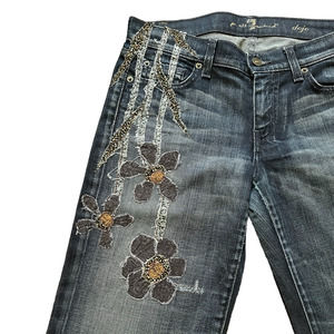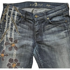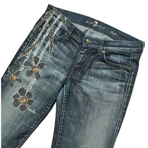SPECIAL RARE 7 FOR ALL MANKIND Low Rise Dojo Jeans with Floral Applique SZ 28