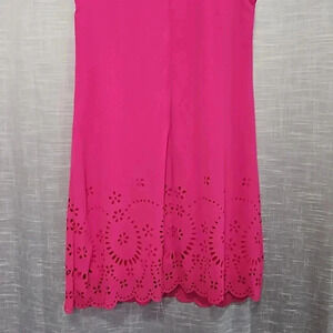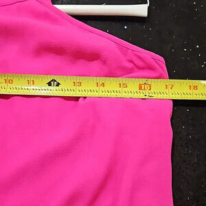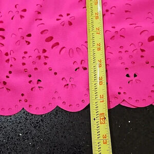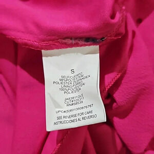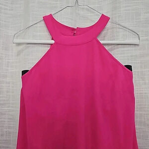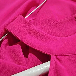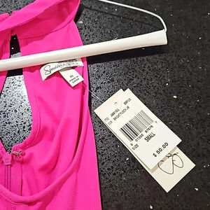 bright fuscha shouderless dress with neck accent and key hole in the back