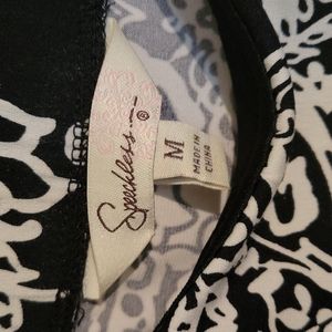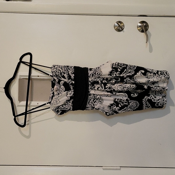 Speechless casual dress, M, sleeveless, black and white print, self: 96% Polyester 4% Spandex, contrast: 95% Polyester 5% Spandex, lining: 100% Polyester, used only once