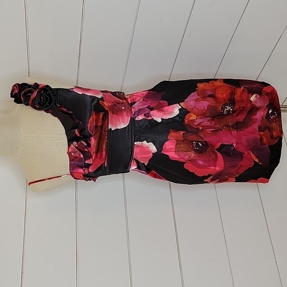 SPEECHLESS size 3 black and red floral one shoulder mini dress