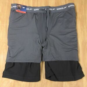 SPEEDO Black Grey Tech Volley Swim Shorts Sz M (32-34) Swim Trunks Swimsuit NWT